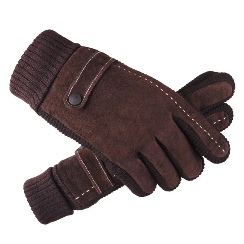 Мужские кожаные перчатки, коричневые теплые мотоциклетные перчатки из натуральной кожи, Осень-зима 2021