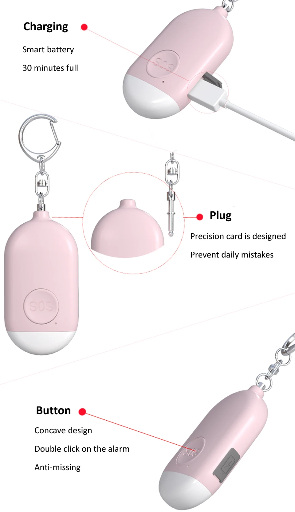 WSDCAM сигнализация для самозащиты 120 дБ Защита для девочек персональная безопасность крик громкий брелок Аварийная зарядка сигнализация