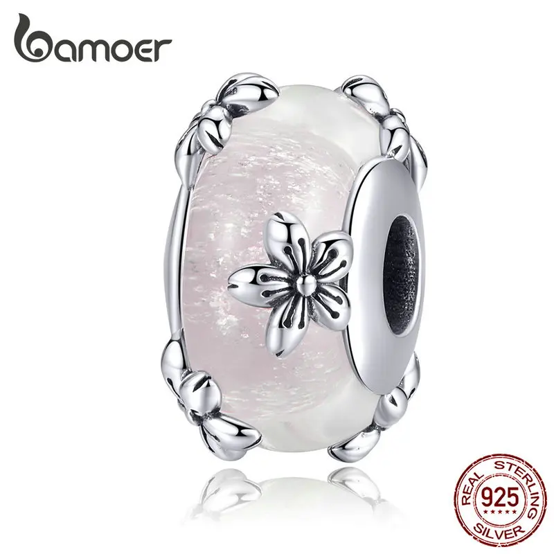 Женские Винтажные бусины из муранского бисера bamoer, оригинальный серебряный браслет ручной работы со стеклянным шармом, ювелирные изделия из стерлингового серебра 925 пробы, SCC1302