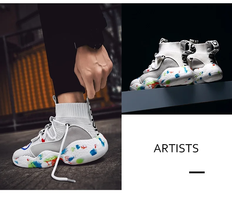 Кроссовки мужские высокие, повседневная обувь для тенниса, дышащие, на шнуровке, удобные