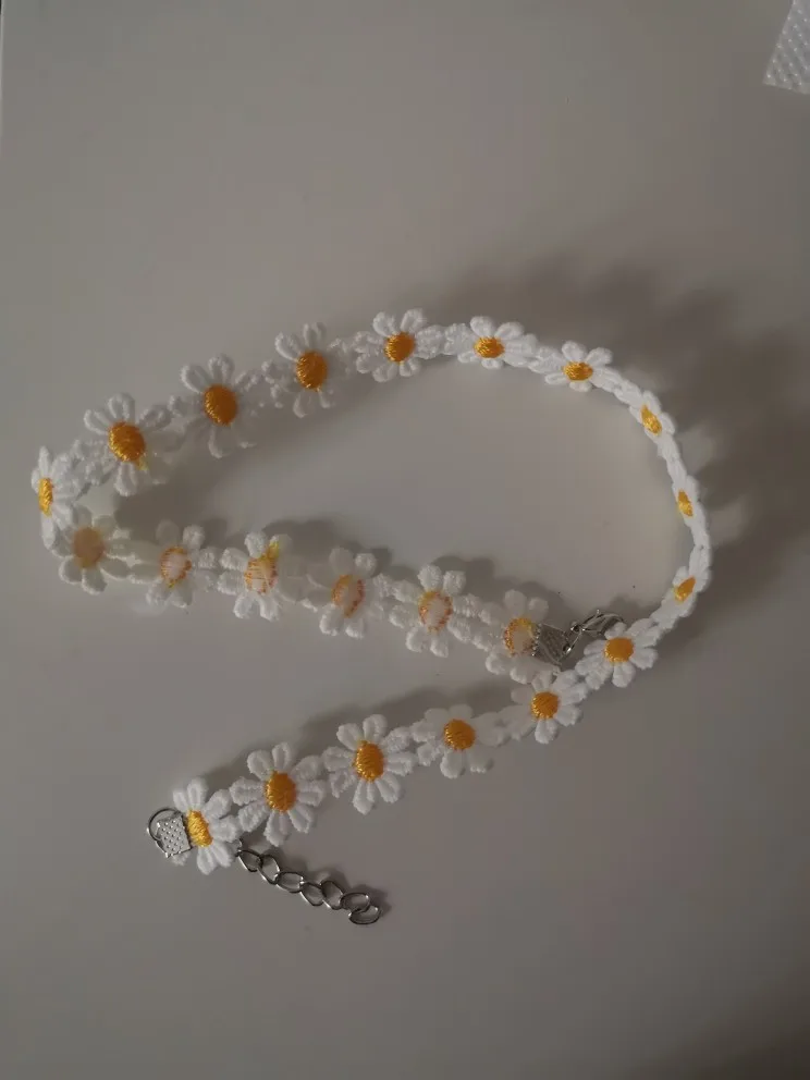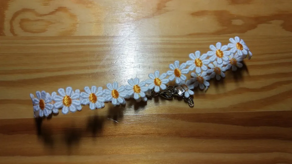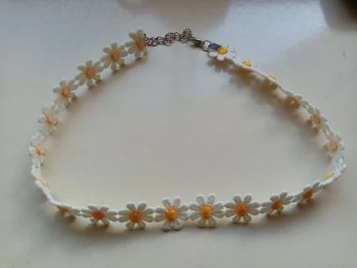 Прибыл в Чехию менее чем через месяц. Учитывая, что он пришел раньше, чем обычно делает упаковка Aliexpress. Нет торчащих ниток. Выглядит крепким. Регулируемая цепочка 5 см. Цветочки 33 см. Всего 38 см. Немного великовата, но моя Шея действительно маленькая, так что это ожидалось. Очень доволен.