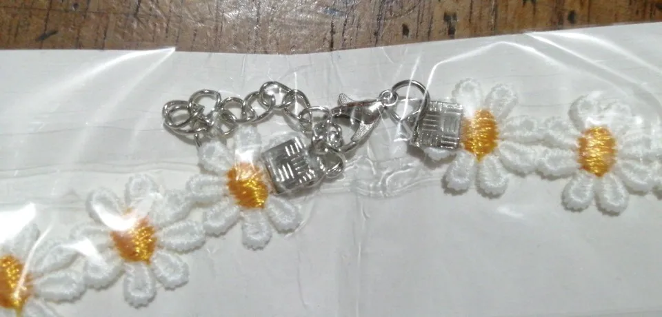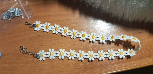 Товар пришел через 1 месяц, он очень милый, он как вышивка, я получил большой размер, так как моя шея очень тонкая (29 см), поэтому я должен был настроить его самостоятельно с помощью плоскогубцев: c (ожерелье размером 35-34 см, в зависимости от того, насколько плотно вы хотите), все еще, Я предполагаю, что эта проблема моя, так как это обычно случается со мной с чокерами, но я хотел поделиться им в случае, если кто-то обслуживает uwu