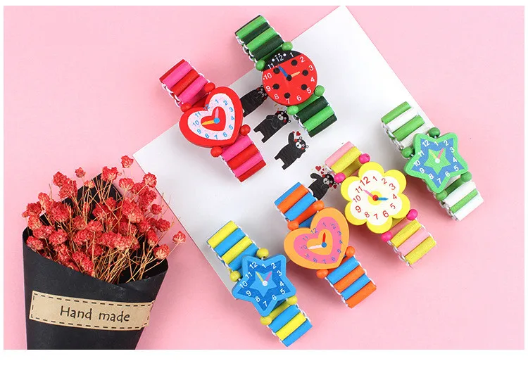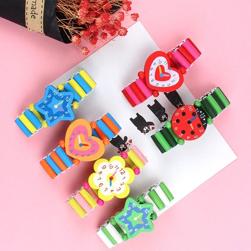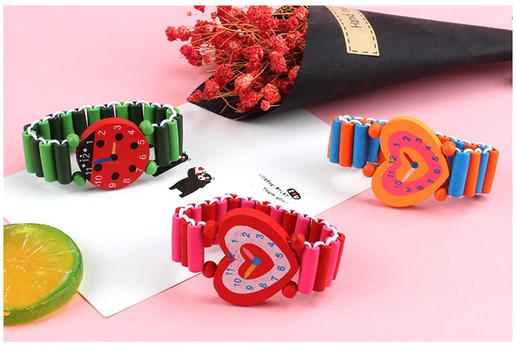 3 шт.лот, деревянные наручные часы, милые Мультяшные часы-браслет, часы ручной работы, игрушки для детей, обучающие и образовательные подарки Вечерние