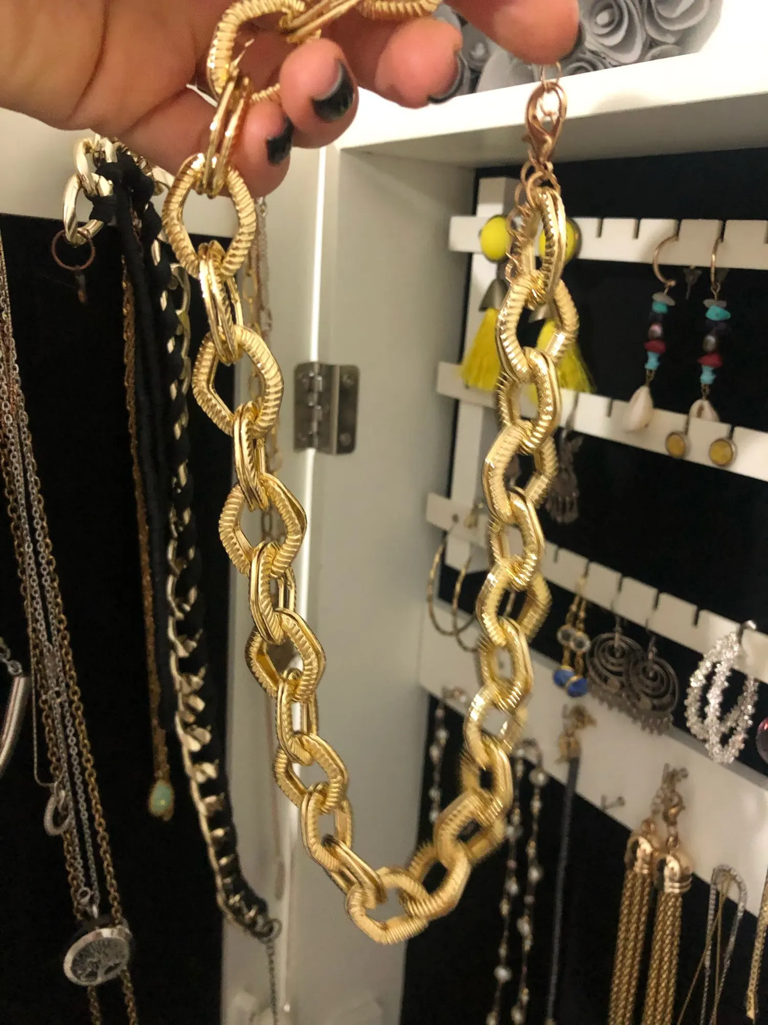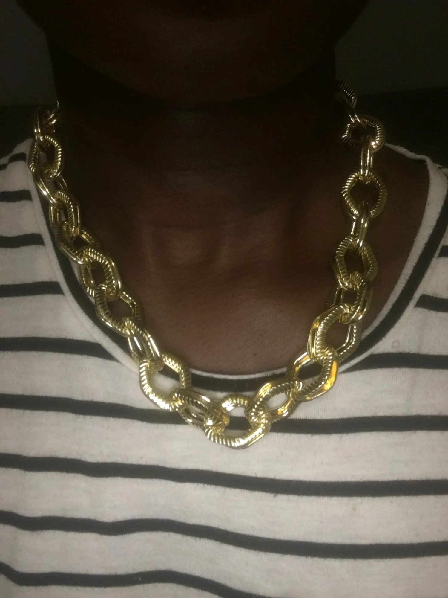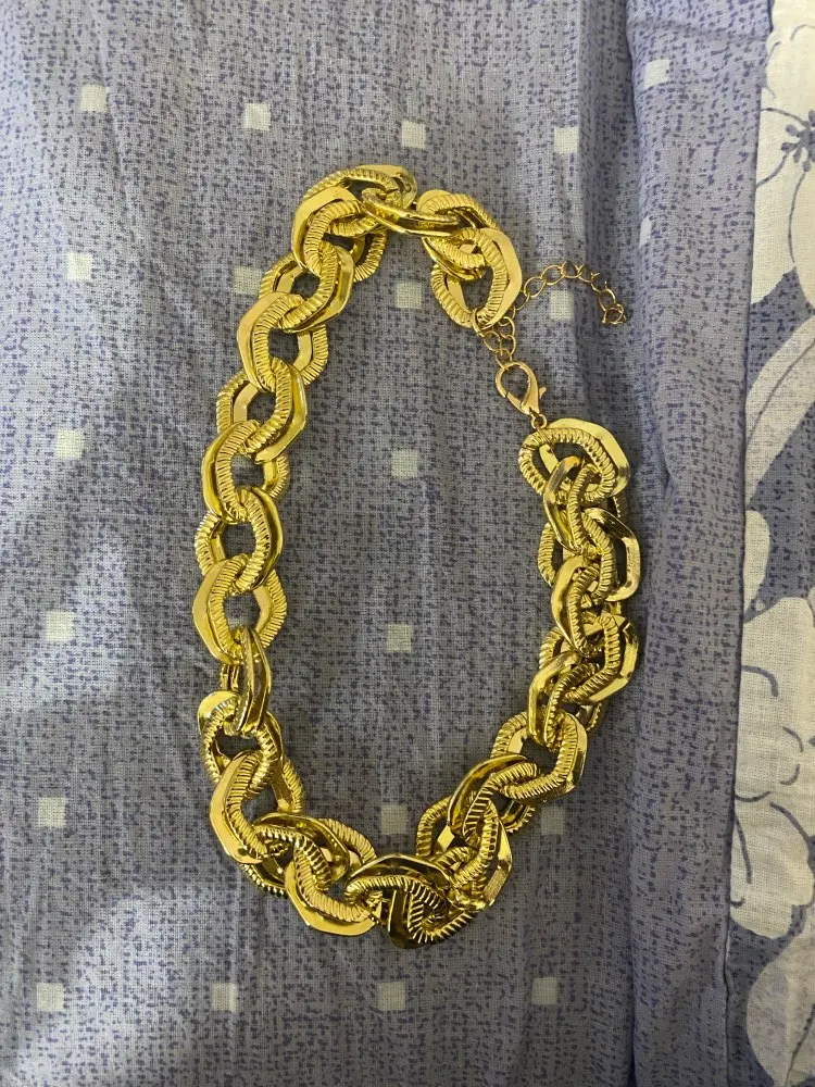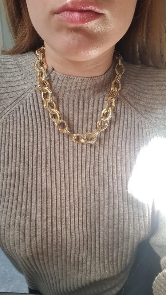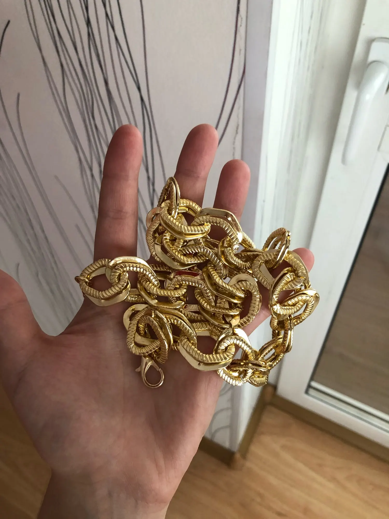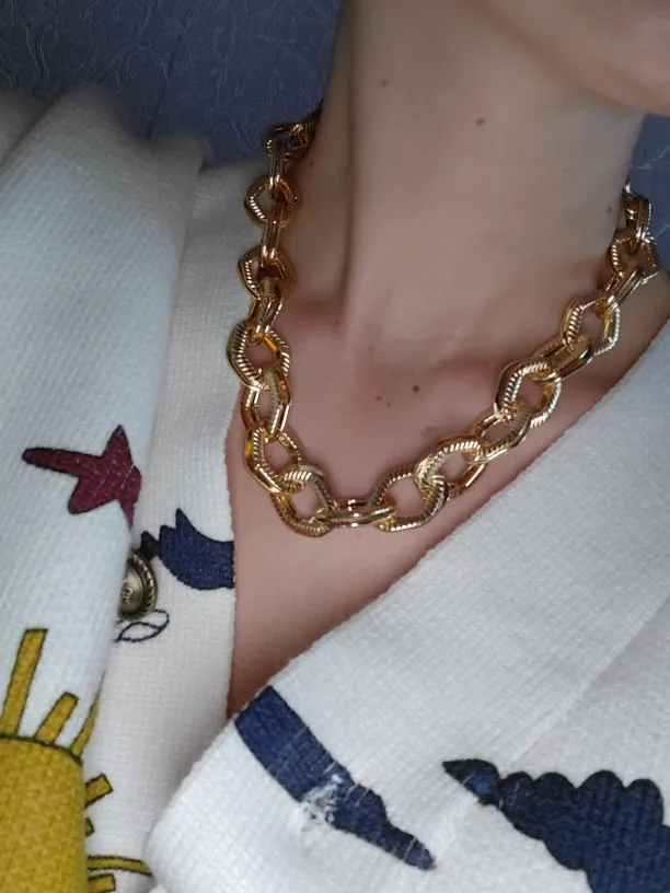 Цепь очень легкая. Только для фотографий. В обычной жизни носить не стану. Выглядит очень дёшево.