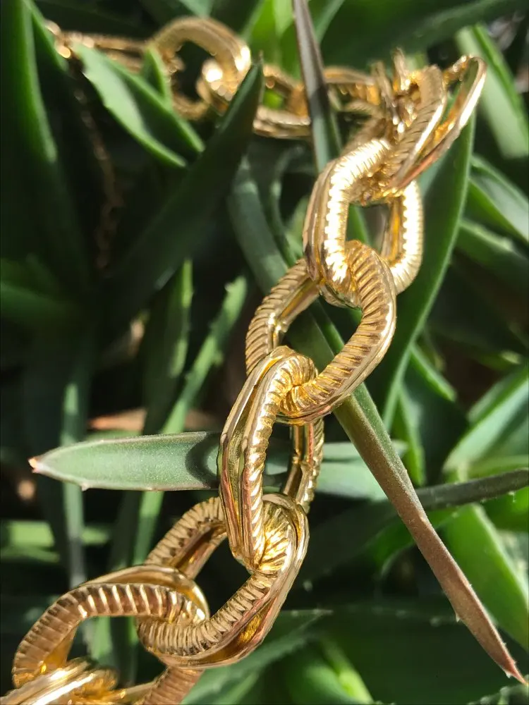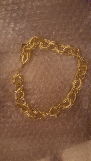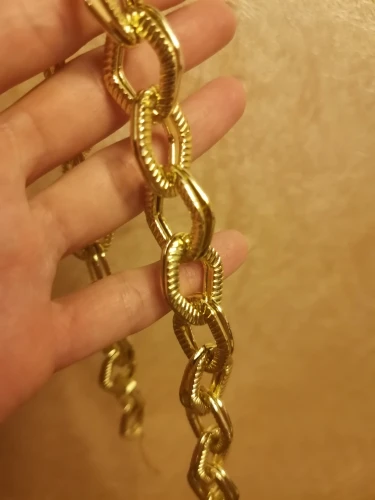 Ощущение что меня развели-)) цвет начищенного золота сильно блестит видно что бижутерия. Выполнено неряшливостей зазоры в колечках некрасивые большие и местами острые и плохо подогнанные. В руках лёгкий пластик... странно все это... не ношу...