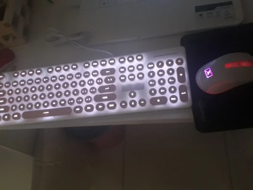 Красивая клавиатура! Все подошло упаковано в коробку и покрыто защитной пленкой. Клавиши очень тихие и производят минимальный звук при нажатии. Для панели ключей есть один светлый цвет. Мышь имеет несколько вариантов цвета света. Проверено каждый ключ и все хорошо работает.