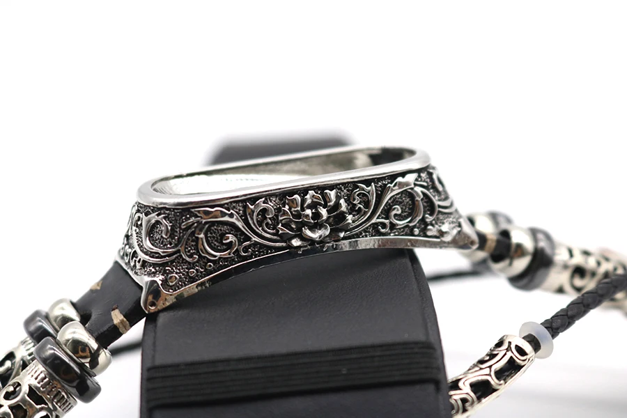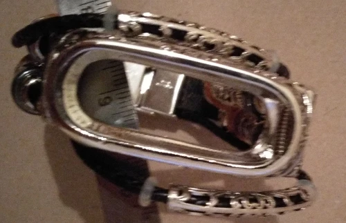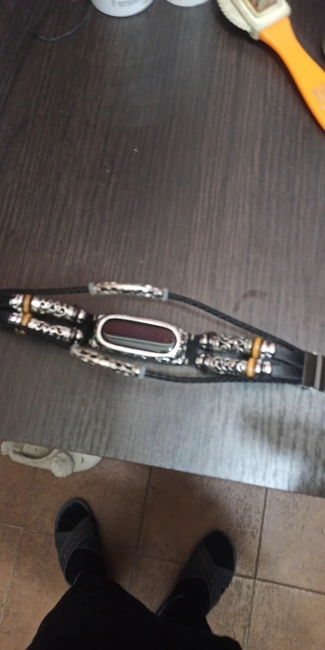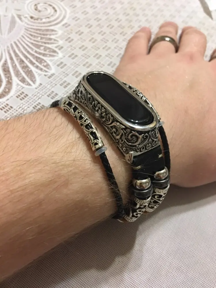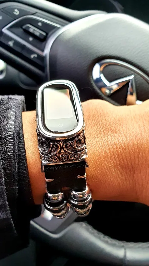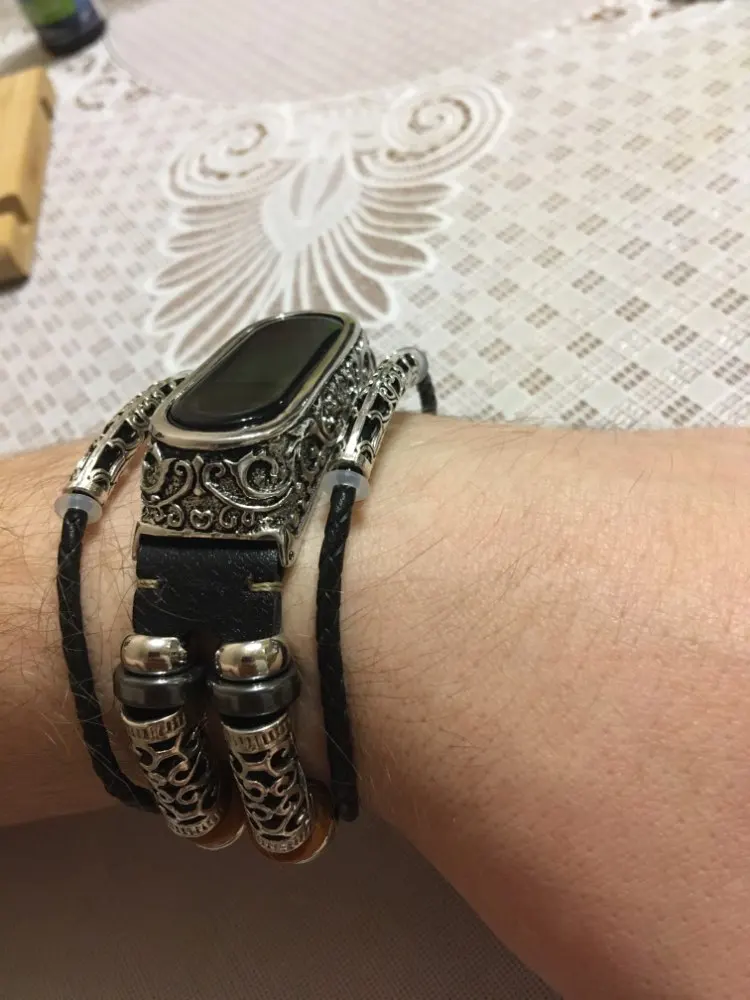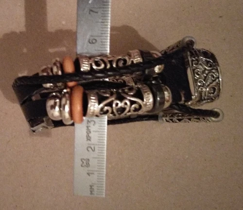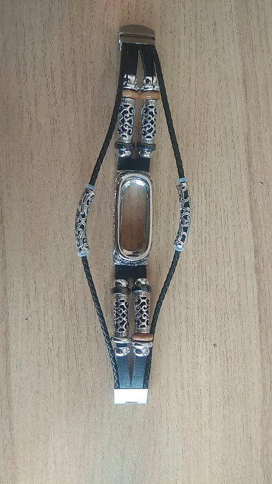 Отличный ремешок, Настоящая кожа, металл непонятно какой сплав. В комплекте отверточка для подцепления замков чтобы поменять размер. Довольно большой по высоте, но некритично. Интересный механизм крепления в ремешке - на пружине задняя крышка, которая поджимает устройство чтобы оно не выпадало. Стильно и цыганско, Джонни Депп одобряет.