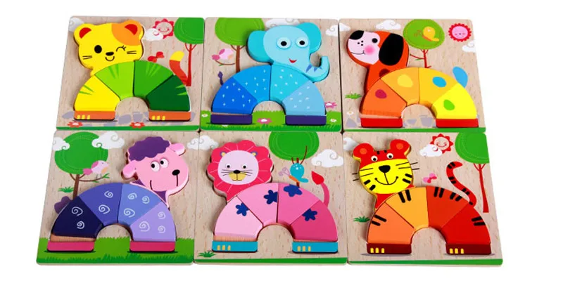 Креативный 3D Деревянный пазл, Мультяшные животные, познавательная головоломка, красочные Ранние развивающие игрушки для детей, малышей