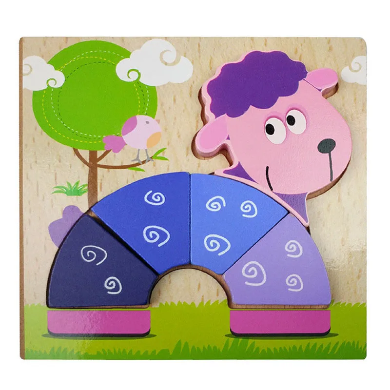 Креативная 3D деревянная головоломка, Мультяшные животные, развивающие игрушки для детей, для раннего развития