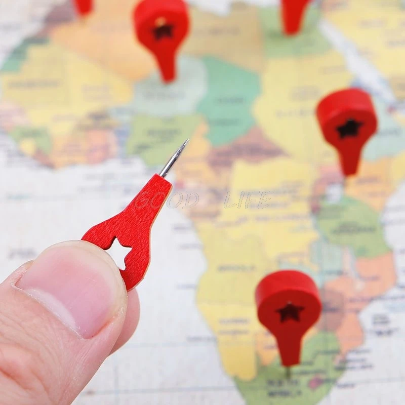 заказала в подарок для деревянной карты мира. однако стоит сказать, что при использовании на фанере, придётся сверлить дырки для геометок.
