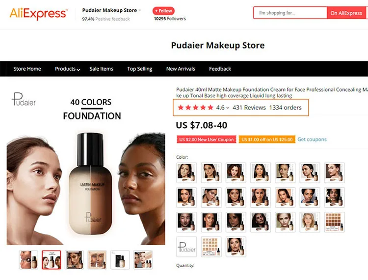 Pudaier Makeup Store - Надежность 92%