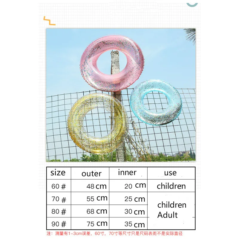 Надувной круг для взрослых, с блестками, спасательный круг прозрачного цвета, для взрослых и детей, снаряжение для начинающих плавать, 2019