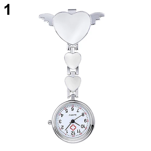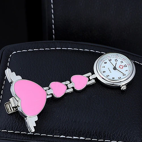 Часы женские кварцевые с сердечками, портативные карманные с милым сердечком из нержавеющей стали, с клипсой-брелком, для медсестер