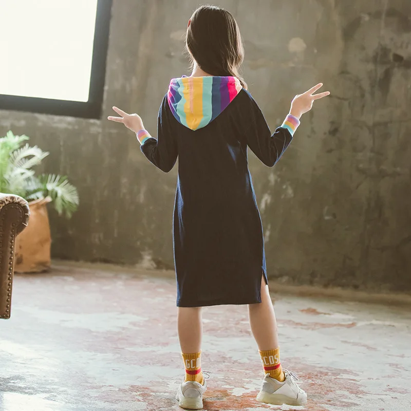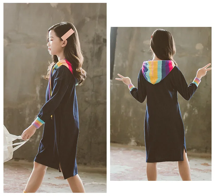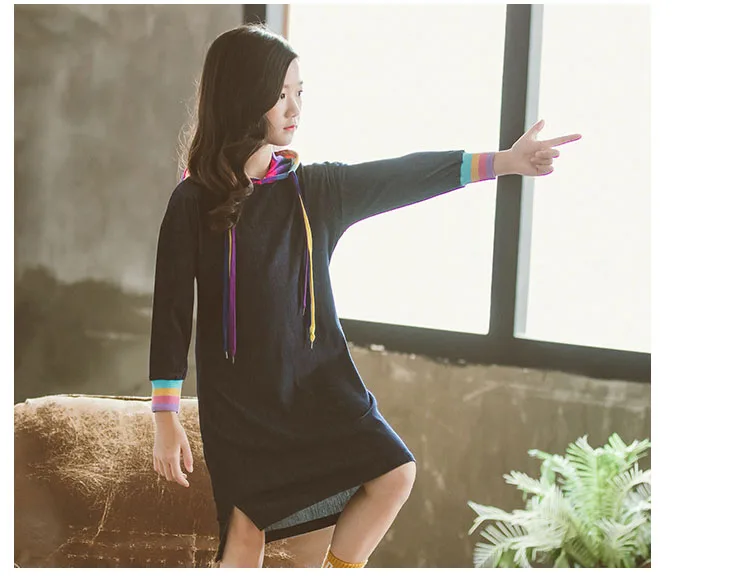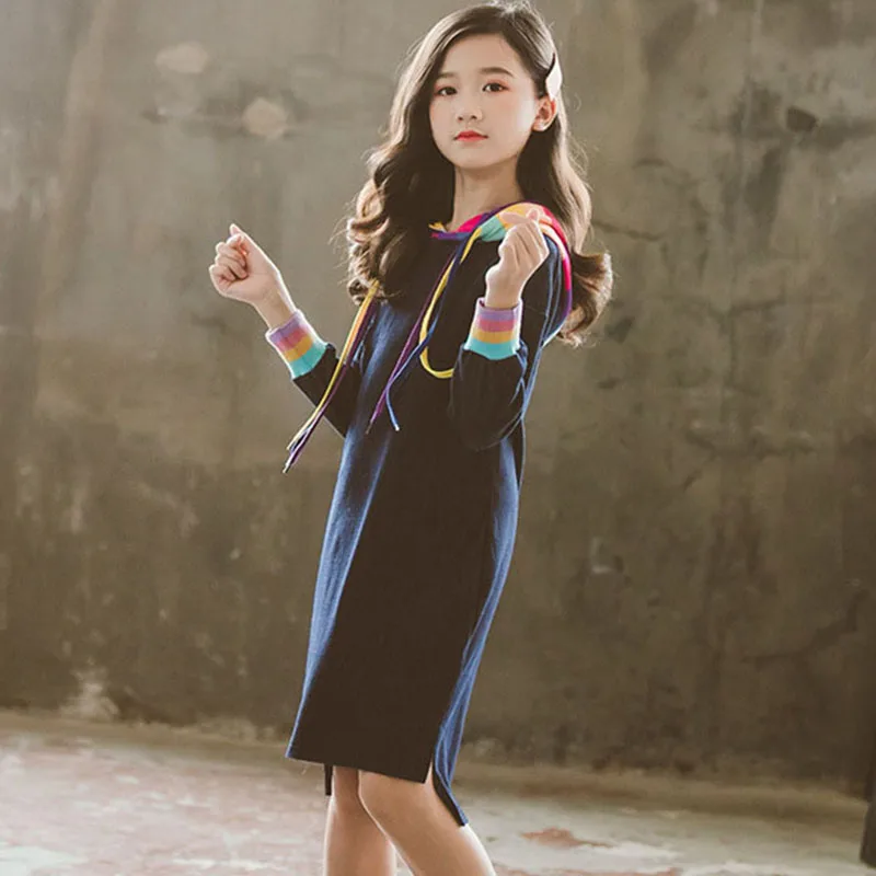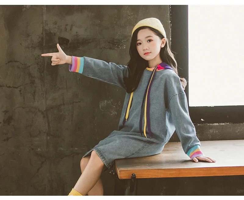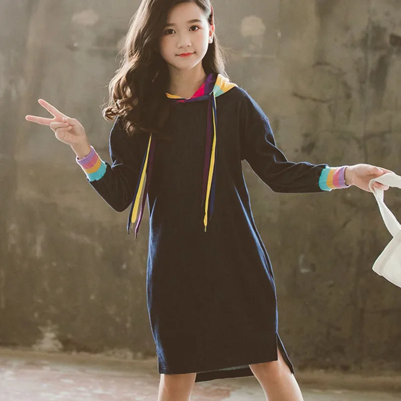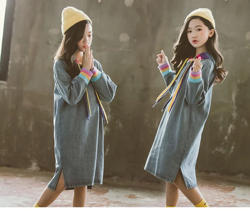 Синие джинсовые детские футболки, платья для девочек на весну и осень, платье для девочек, одежда для подростков, Детская школьная одежда с капюшоном, 2022