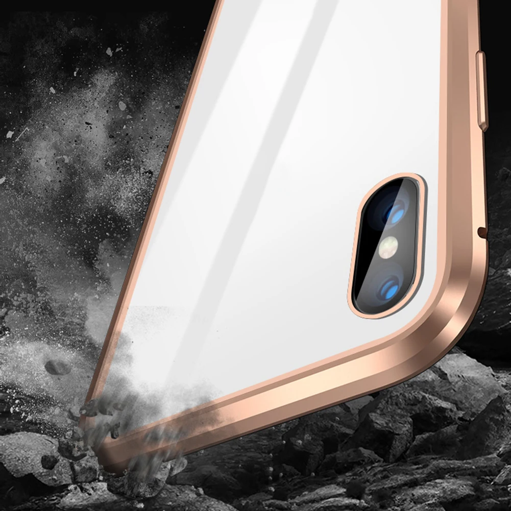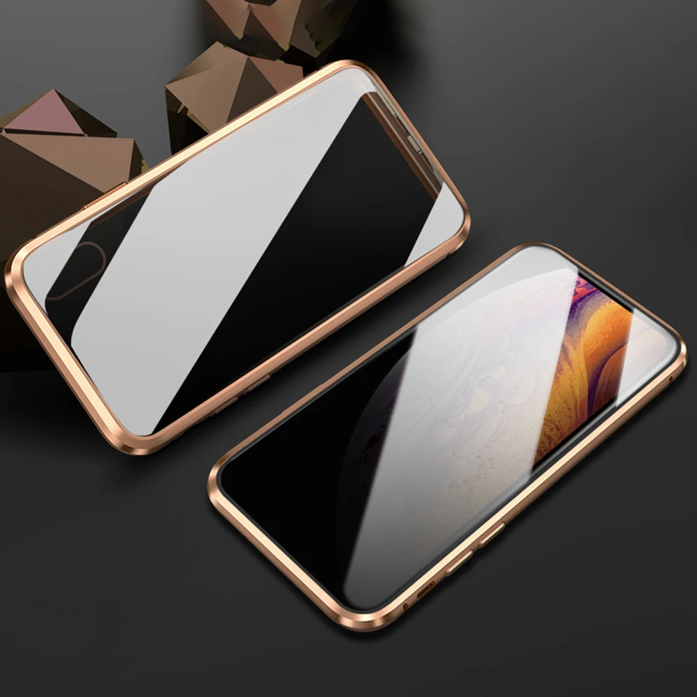 Магнитный защитное закаленное стеклянный магнит металлический чехол для телефона 360 полный корпус защитный чехол для Iphone XS MAX X XR 8 7 Plus
