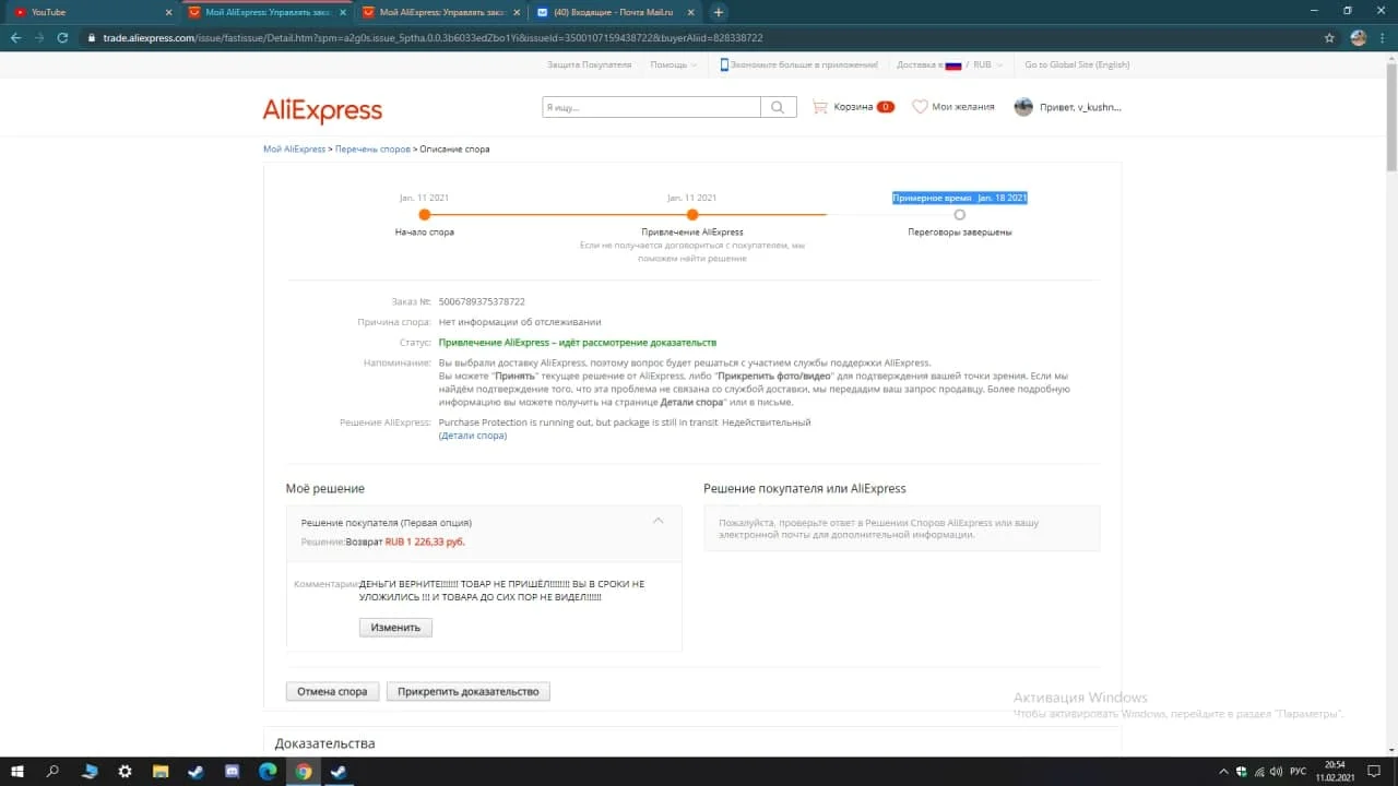 ДЕНЬГИ ВЕРНИТЕ!!!!!!! ТОВАР НЕ ПРИШЁЛ!!!!!!!! ВЫ В СРОКИ НЕ УЛОЖИЛИСЬ !!! И ТОВАРА ДО СИХ ПОР НЕ ВИДЕЛ!!!!!! Продавец уже 2 месяца подряд ИГНОРИРУЕТ МОИ СООБЩЕНИЯ! И не возвращает деньги!!! Я сегодня был в почтовом отделении (11-Февраля, 2021года) НичегоНЕ ПРИШЛО!!! ПОСЫЛКА НЕ ОТСЛЕЖИВАЕТСЯ С ПРОШЛОГО ГОДА!!!!!!!!!!!!!!!!!!!!!!!!!!!!!!!!!!!!!! КРАЙНИЙ СРОК ДОСТАВКИ Я ПРИКРЕПИЛ ВСЁ В ДОКАЗАТЕЛСТВАХ . Крайний срок доставки посылки был указан 4 декабря 2020 года. Спор висел на протяжении 2 месцов.. Продавец не вышел на связь и не вернул деньги. Я не вижу смысла дальше держать свой спор и трепать себе же нервы! поэтому и закрыл!!!!! НИКОМУ НЕ РЕКОМЕНДУЮ ДАННОГО ПРОДАВЦА !!!! ОБХОДИТЬ СТОРОГО СТОРОНОЙ !!!! ОЦЕНКУ СТАВЛЮ МИНИМАЛЬНУЮ!!!!!!!!!!! УБЛЮДОК!!!