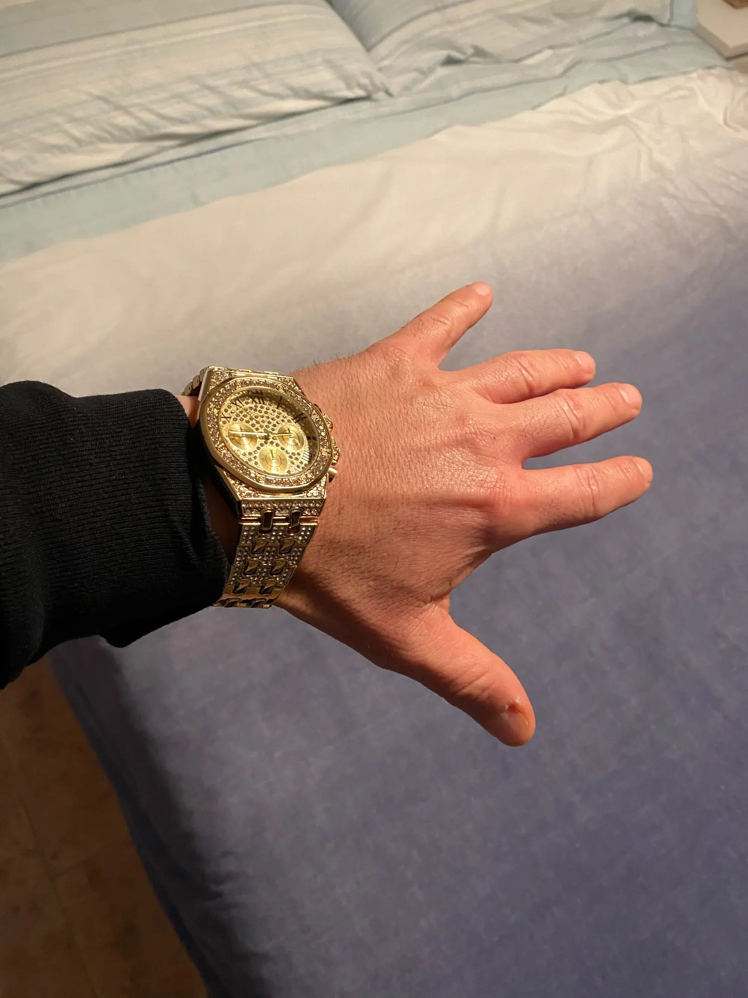 Прибыл в Болгарию в течение 25 дней. Очень хорошо упаковано, чтобы не повредить товар. Часы Потрясающие, отличное качество, кристаллы яркие, не выглядят дешево. Определенно рекомендую продавцу и часам. Такая роскошная и эксклюзивная цена. Я полностью влюблен, спасибо продавцу!