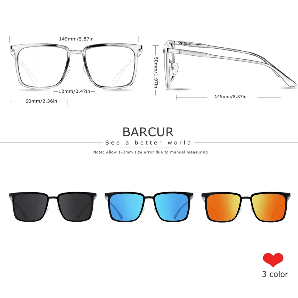 Солнцезащитные очки BARCUR мужские, поляризационные квадратные, из алюминиево-магниевого сплава, в коробке, подарок