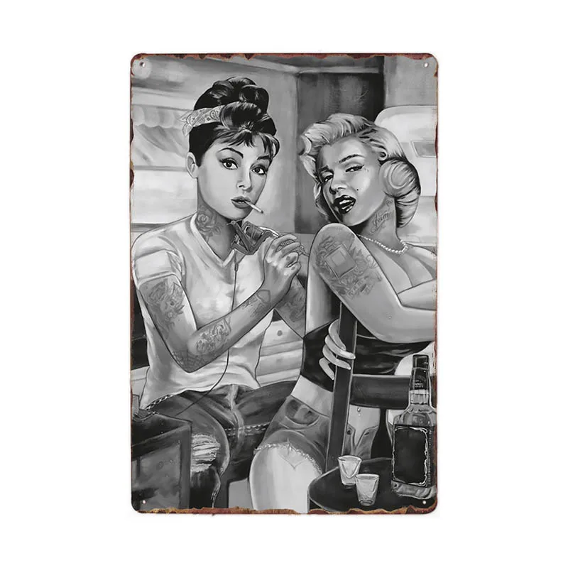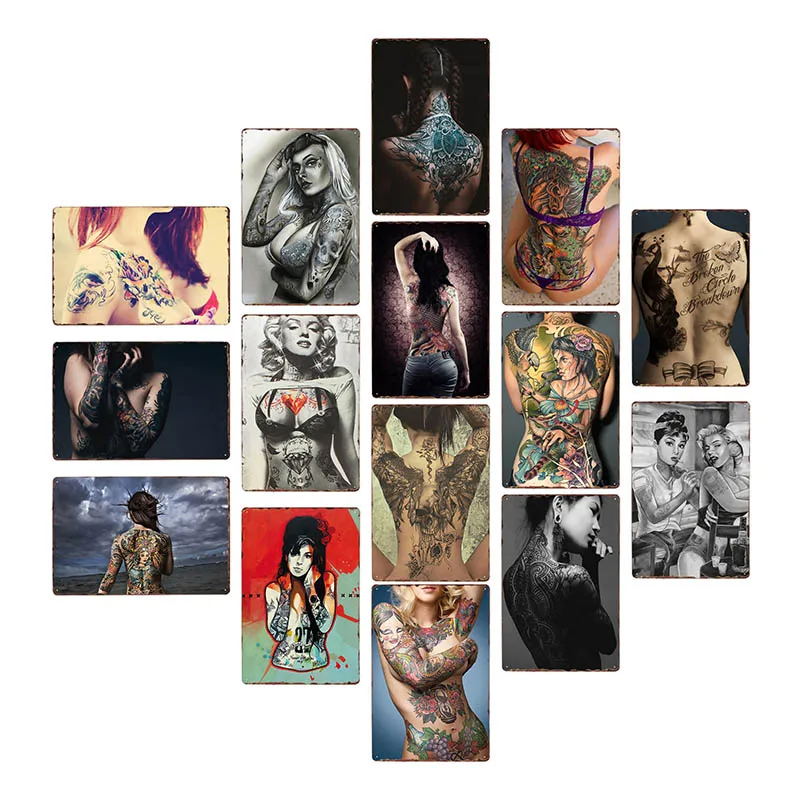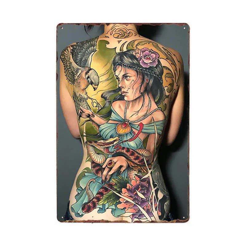 Шпилька для девочек для татуировок, оловянный вывеска металлическая пластина для тату-студий, украшение для магазина, настенный винтажный художественный постер, 20 х30 см