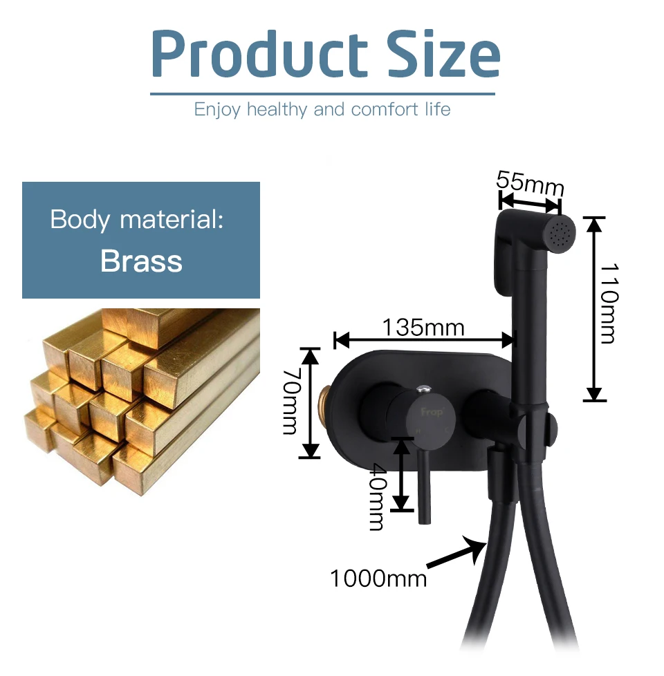 Смеситель для душа Frap, матовый черный, смеситель для биде из твердой латуни, мусульманский смеситель для душа краны для туалета Y500601