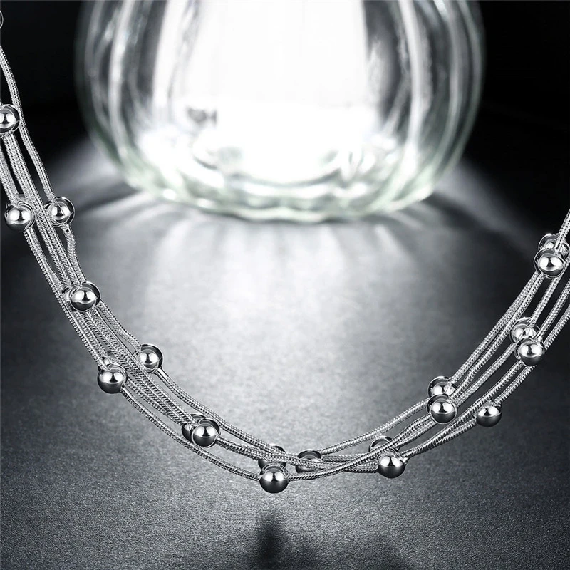 Ожерелье из чистого стерлингового серебра 925 пробы для женщин цепочка змейка ожерелье с бусинами Колье чокер модные ювелирные изделия аксессуары бижутерия