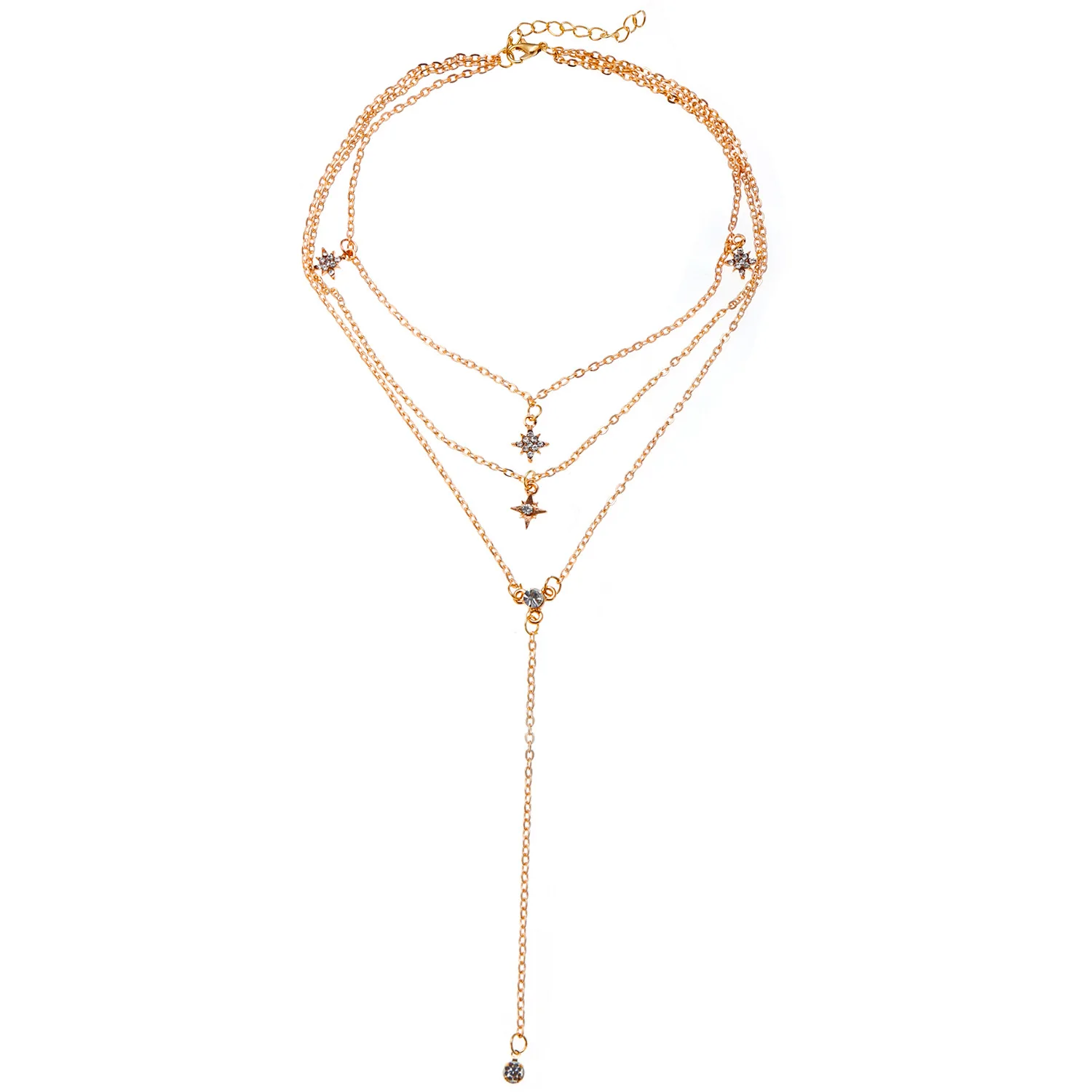 Женское многослойное ожерелье, цепочка с подвеской из сплава, с золотыми кристаллами и звездой, богемное ювелирное изделие, оптовая продажа