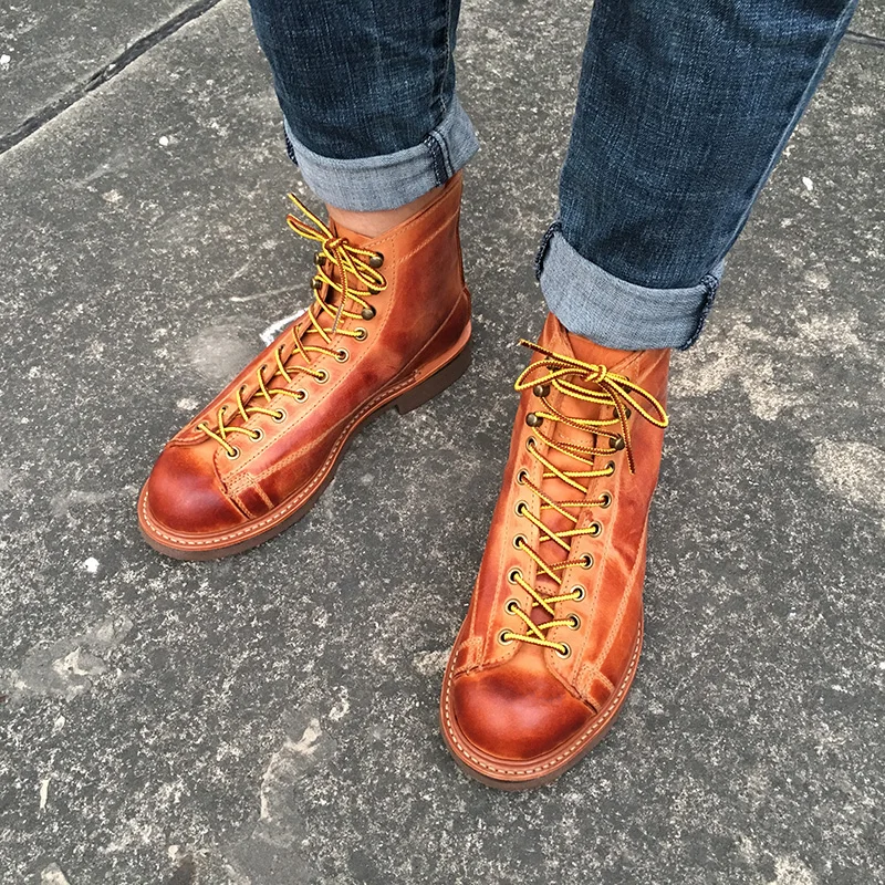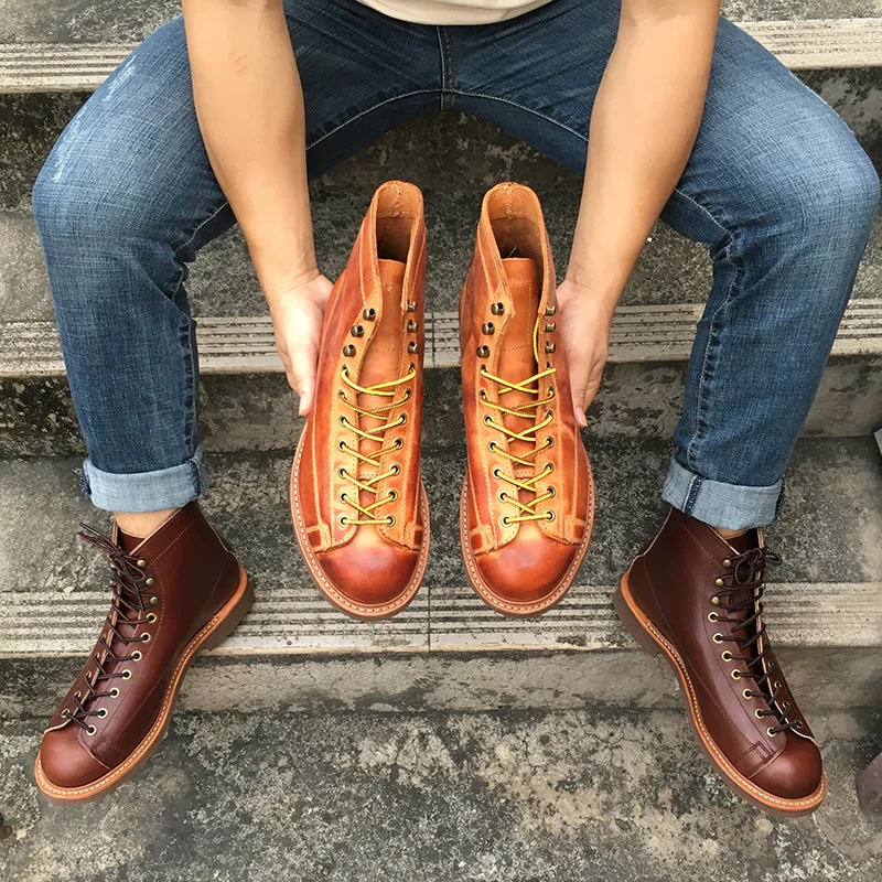 Мужские ботинки yomт., винтажные ботильоны из коровьей кожи, Рабочая обувь в байкерском стиле