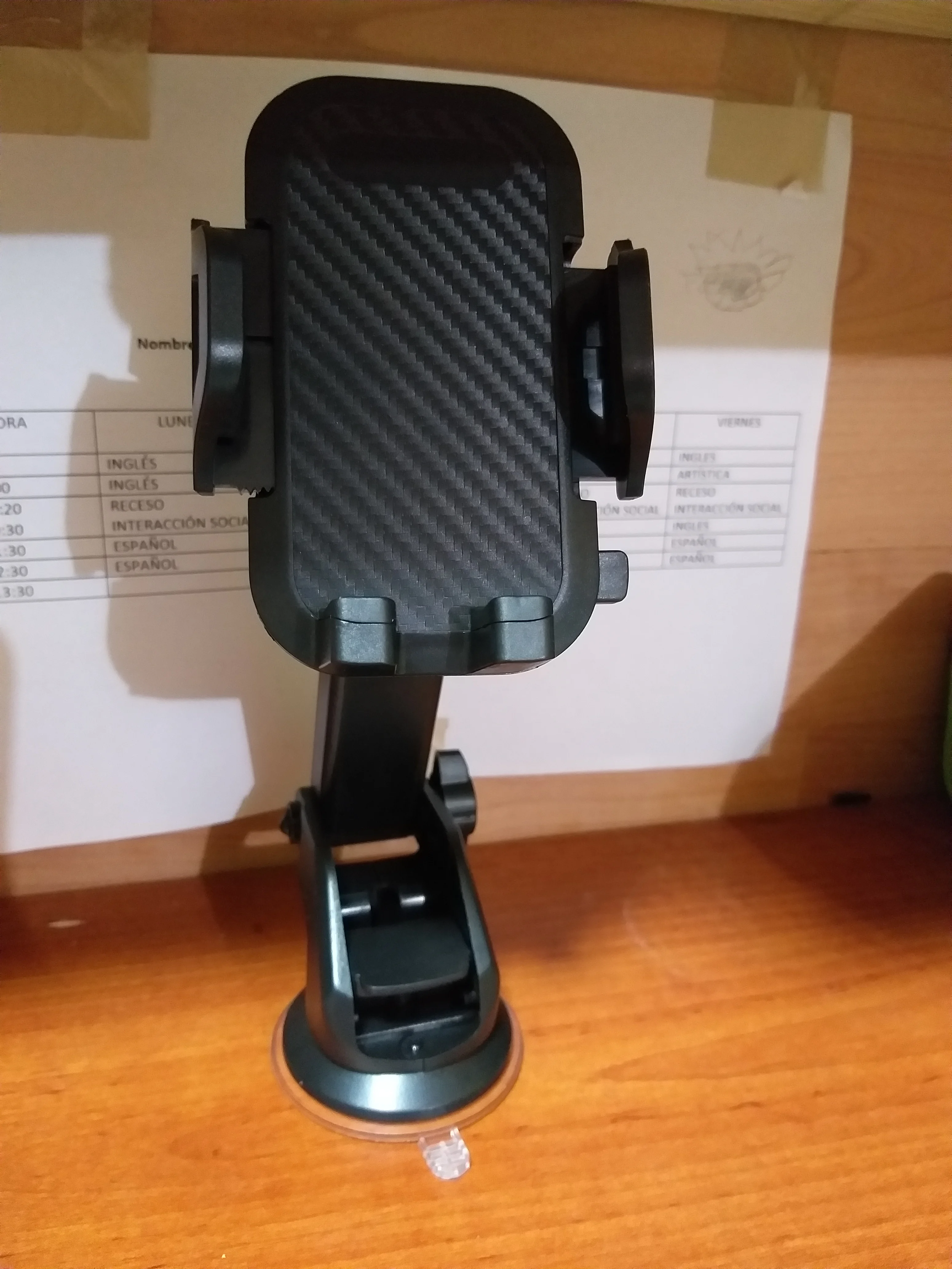 Он прибыл примерно через месяц в Германию. Посылка поставляется без защиты, которая предотвращает возможные повреждения. Просто пластиковый пакет. Он пришел с плохим винтом, так как мне пришлось вытянуть и поставить его правильно. Ничего страшного. Отлично работает, и держатель присоски очень прочный, как на стекле, так и на приборной панели, так как он прилипает, в дополнение к всасыванию. У вас есть достаточно возможностей для регулирования положения телефона. Это дает ощущение, что части, которые держат мобильный телефон, не имеют достаточно силы, но в момент правды, он работает очень хорошо. Лучше, да, вертикально, чем горизонтально. Рекомендуемый товар и продавец!