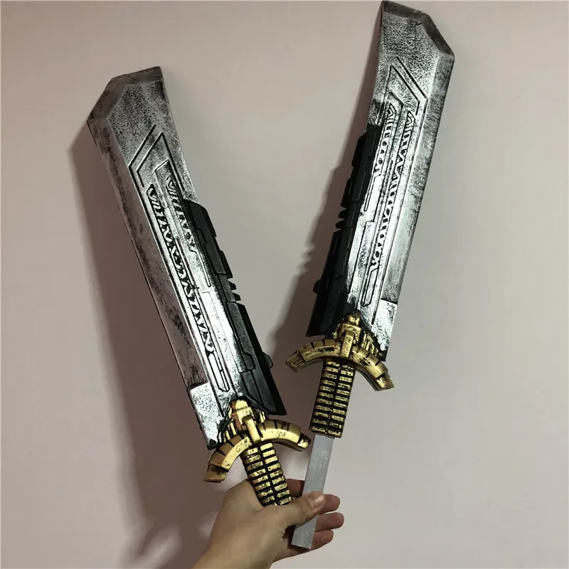 Безопасный полиуретановый материал, корпус из мягкого полиуретана, чтобы не повредить во время игры Материал товара: EVA PU Состояние: 100% новый Размер: Молоток, 44см * 20см * 13см Большой топор, 73*28 см Черный щит, 55*33 см Лапа, 25*7 см Двойной меч, длина 55 см, ширина 12 см, толщина 9 см Перчатки, взрослые 36 см, малыш 30 см Золотой щит, 54 см