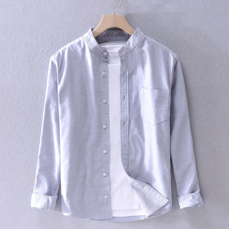 Мужская рубашка с длинным рукавом и воротником-стойкой, в итальянск...