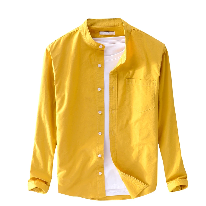 Рубашка мужская с длинными рукавами, чистый хлопок, Желтый Повседне...