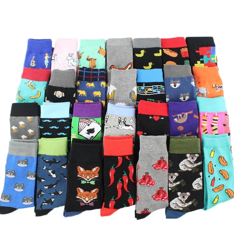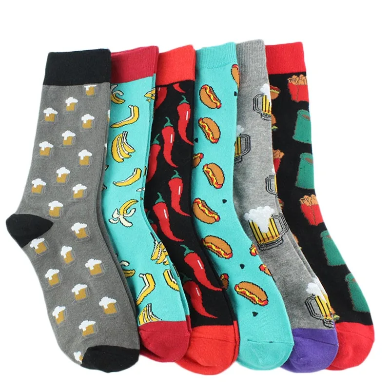 В стиле хип-хоп Носки Мужская Носки лиса гамбургер пивной улицы Носки Экипаж Мужские забавные подарки для мужчин, Skarpetki смешные носки Харадзюку