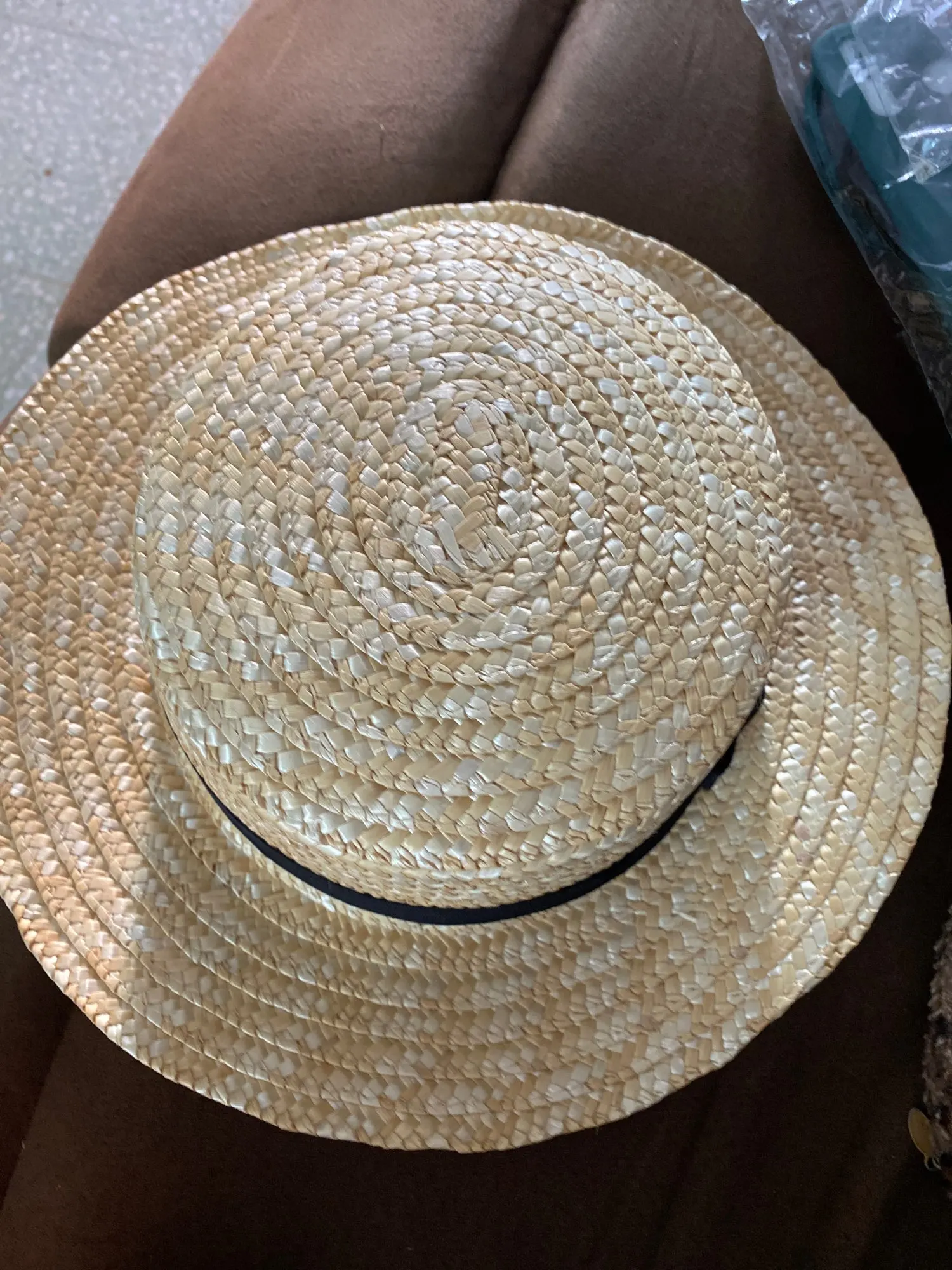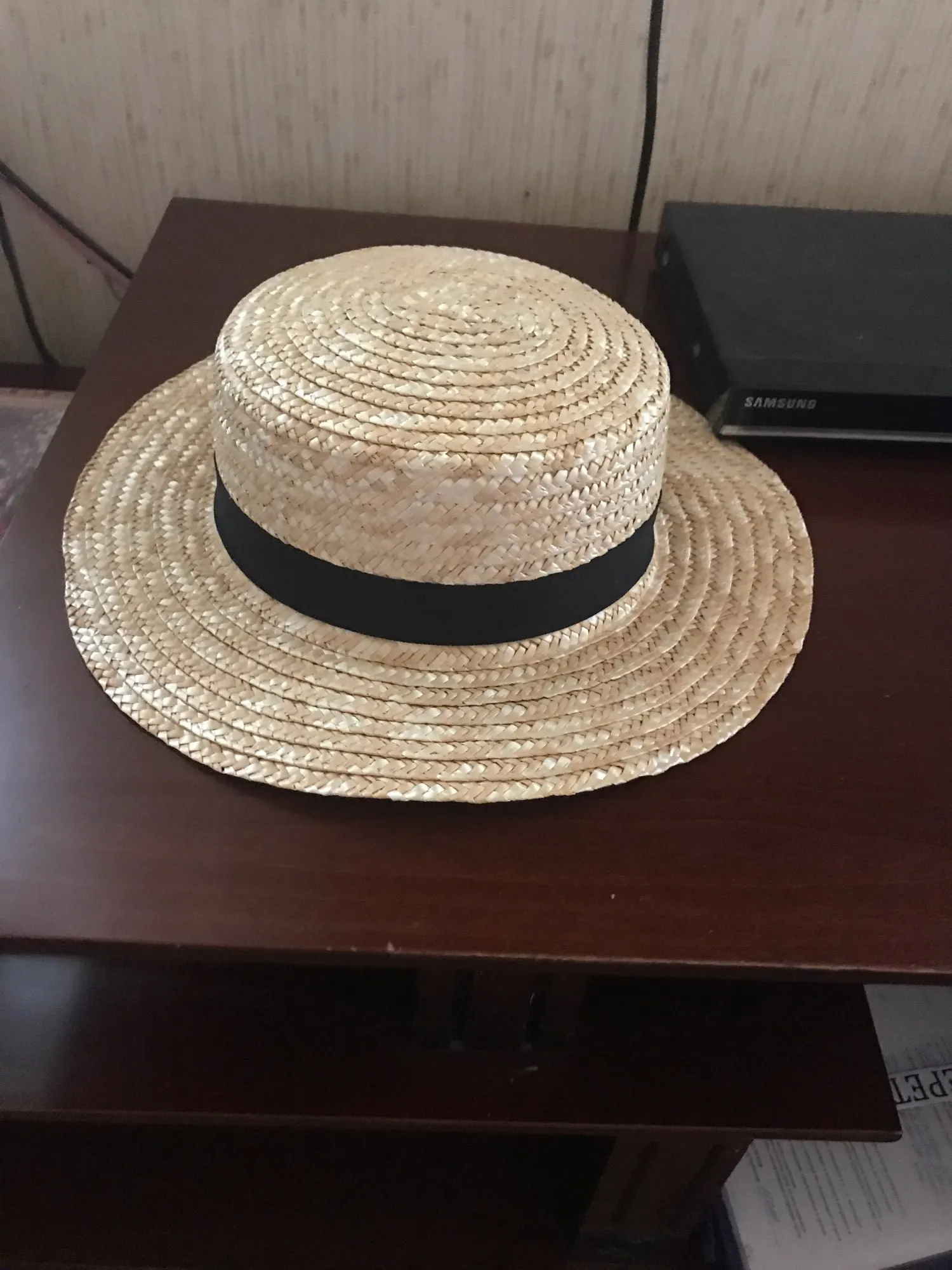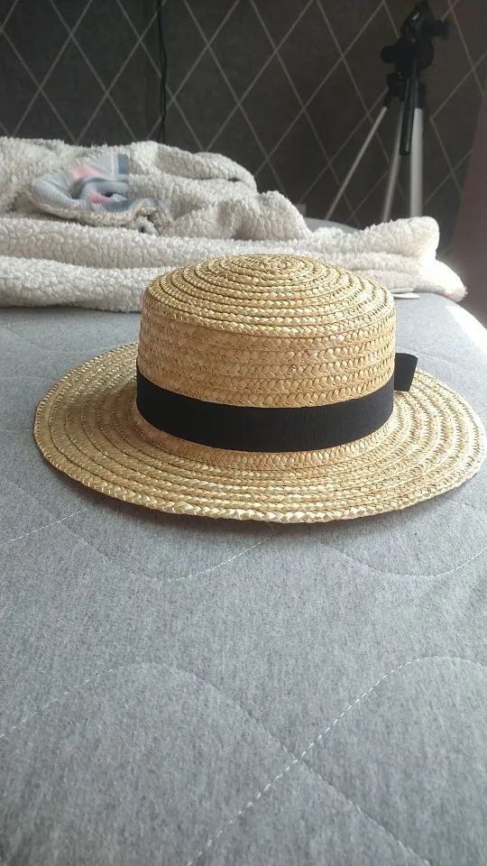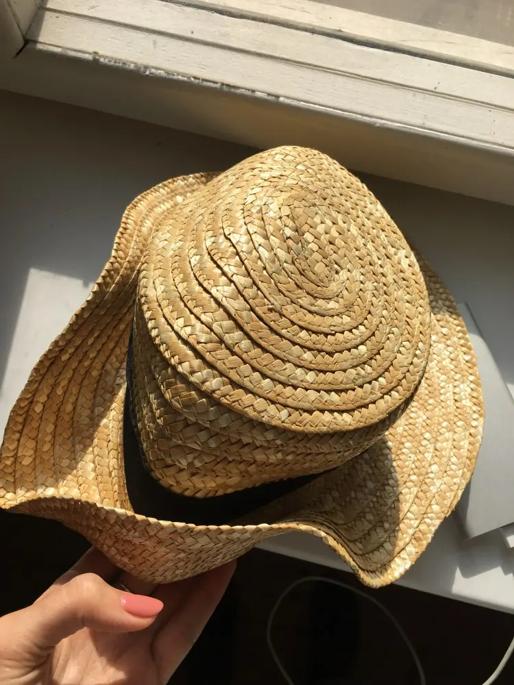 Хорошая шляпа. Пришла в хорошей упаковке, внутри был шар с воздухом поэтому форму держала хорошо. Были только поля загнуты к верху, но утюгом с паром отправилось хорошо. Внутри шляпы куча каких то ниток, как будто шили на скорую руку. Солома натуральная.