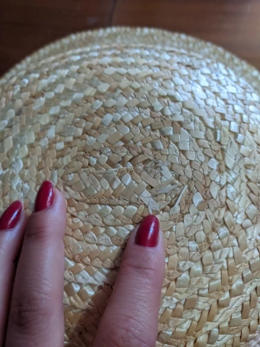 настоящая соломка, пришла в вакуумной упаковке, не помялась, но поля загнулись по форме упаковки. надеюсь выпрямятся. не красиво заделан край вязки. есть небольшой брак-дырочка и много торчит ниток. но все это незначительные минусики