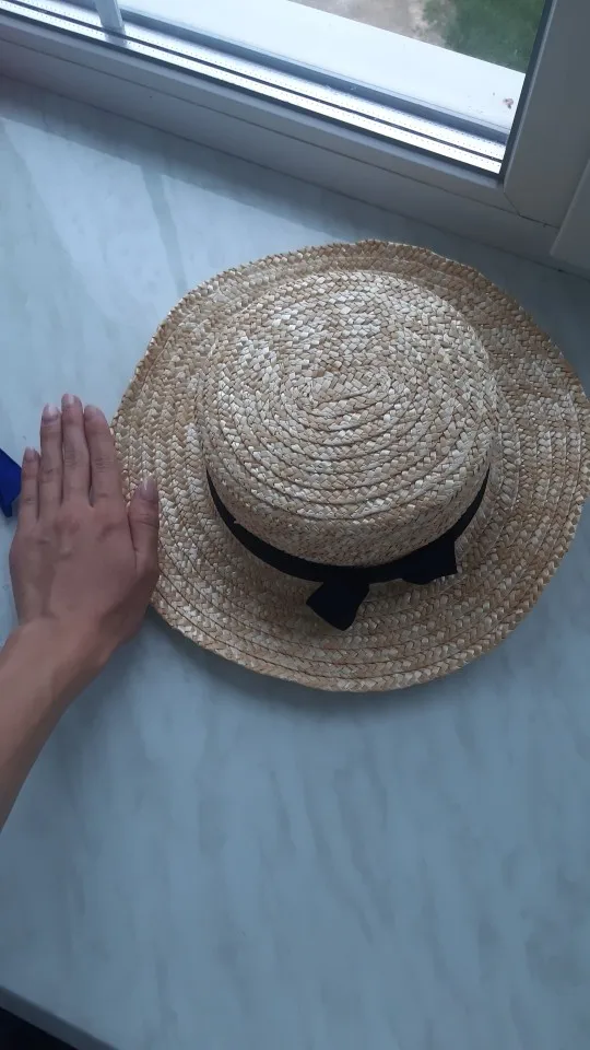 Заказывала 2 разные шляпы у этого продавца, пришли вместе. Продавец отправил быстрее, чем дал невнятный ответ на вопрос о соответствии размера. Почти не помялись, за это плюс *. Размер шляпы в описании очень преувеличен, на голову 58 см она явно мала. Качество тоже очень хромает: ...поля разной ширины...солома местами торчит, грубая, лента выше, чем ей место, приклеена...ну такое... даже за такую невысокую цену описанию соответствует лишь отчасти...хотя...если бы размер мне подошёл, вероятно я была бы даже довольна, а так... Халтура, рекомендовать не буду