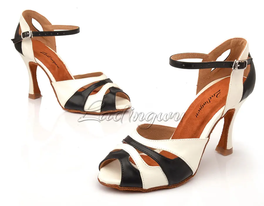LadingwuБальные Танцевальные Туфли; женские черные и белые кожаные туфли для латинских танцев; женские танцевальные туфли; профессиональная танцевальная обувь