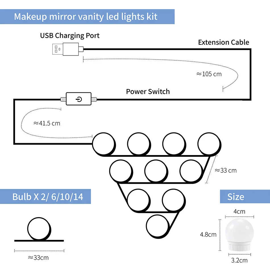 Номер моделиLED Makeup Mirror Vanity Light Bulbs