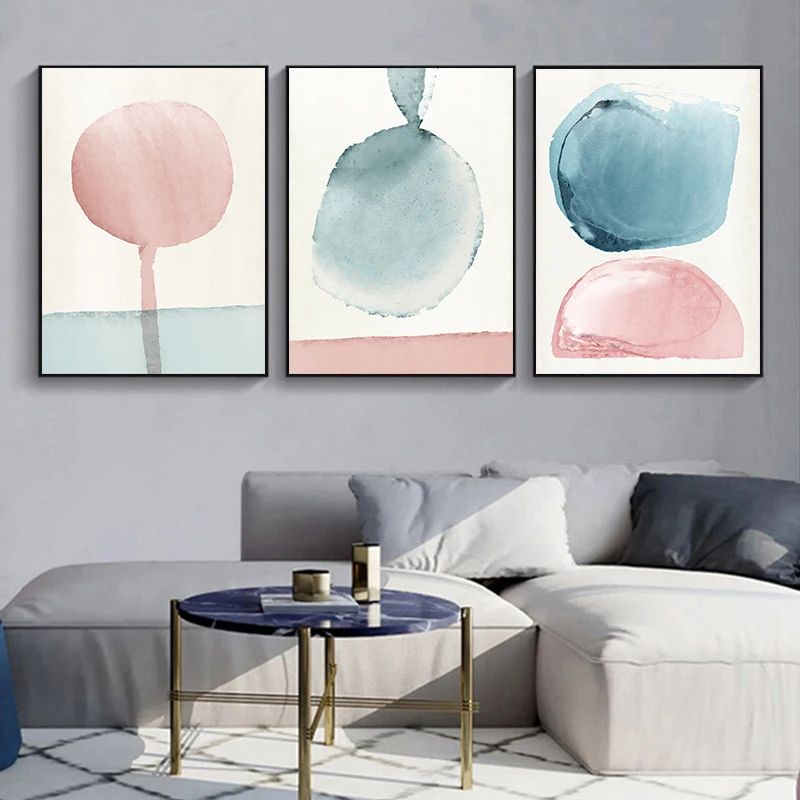 Акварельный геометрический постер на холсте, абстрактная живопись, минималистичный принт, нордическое украшение, Настенная картина для декора гостиной