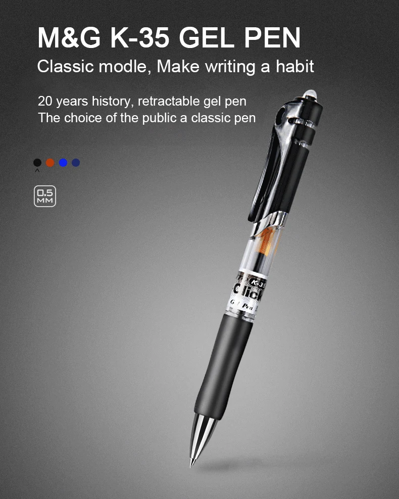 Выдвижная гелевая ручка M G K35 R1, 0,5 мм, многоразовые сверхтонкие гелевые ручки, черныесиниекрасныетемно-синие чернила, офисные принадлежности, канцелярские принадлежности