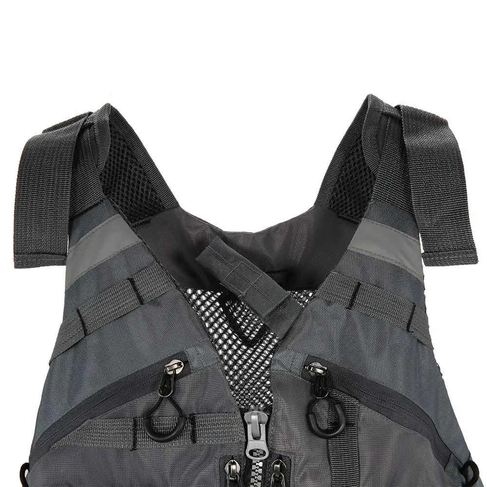 Этот спасательный жилет для рыбалки больше похож на тактический жилет с 11 карманами на молнии и несколькими прикрепляемыми лестницами и аксессуарами петлями на передних и широких отражателях на спине и плече. Под тактическим внешним видом это полностью функциональное Флотационное устройство, которое отстегивается для работы в качестве ножного рыболовного снаряда. И этот жилет подойдет практически любому человеку из-за переплетенных регулируемых ремней с пряжкой. Если ваш основной приоритет хранения id gear, этот спасательный жилет является одним из видов. Отлично подходит для рыбалки, КАЯКОВ, каноэ (практически любой тип рыбалки).Особенности:Изготовлен из высококачественного полиэфирного корпуса ripstop и заменяемой пены EPE внутри для превосходной плавучести.Четыре вместительных нагрудных кармана, четыре передних кармана на молнии, два боковых сетчатых кармана и один вместительный задний карман в общей сложности.Аксессуары петли и крепления лестницы на груди приглашают на заказ вложения.Сетка на спине и сетчатая ткань внутри обеспечивают высокую воздухопроницаемость.Открытые стороны оставляют вам больше места для весла, бросания или наведения на воду.Многоярусные регулируемые ремешки с пряжкой подходят практически для любого человека.Отражатели на спине и плечах обеспечивают профессиональную безопасность для спасения жизни.Отлично подходит для ловли нахлыстом, КАЯКОВ, каноэ (довольно много любого типа рыбалки).Характеристики:Цвет: серый/зеленый/красный/синий (опционально)Материал: полиэстер + пена EPEМаксимальный подшипник: 95 кг/209.44lbРазмер изделия: 55*46 см/21,65*18,1 дюймаВес: 75 г/фунтовРазмер посылка: 50*44*10 см/19,69*17,32 * 3.94inВес посылка: 780 г/1.71lbПосылка:1 * спасательный жилет для рыбалки