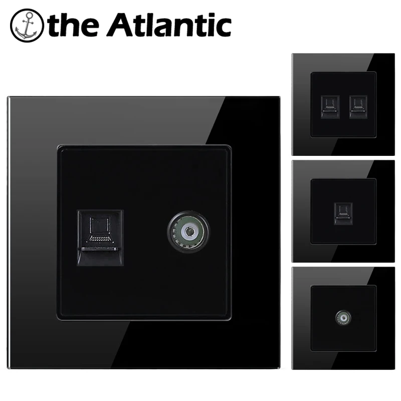 Настенная розетка Atlectric Rj45, двойной разъем для передачи данных, с закаленным стеклом, для телевизора, компьютера