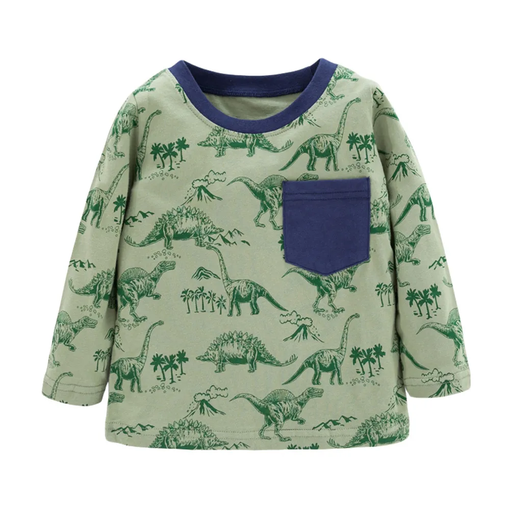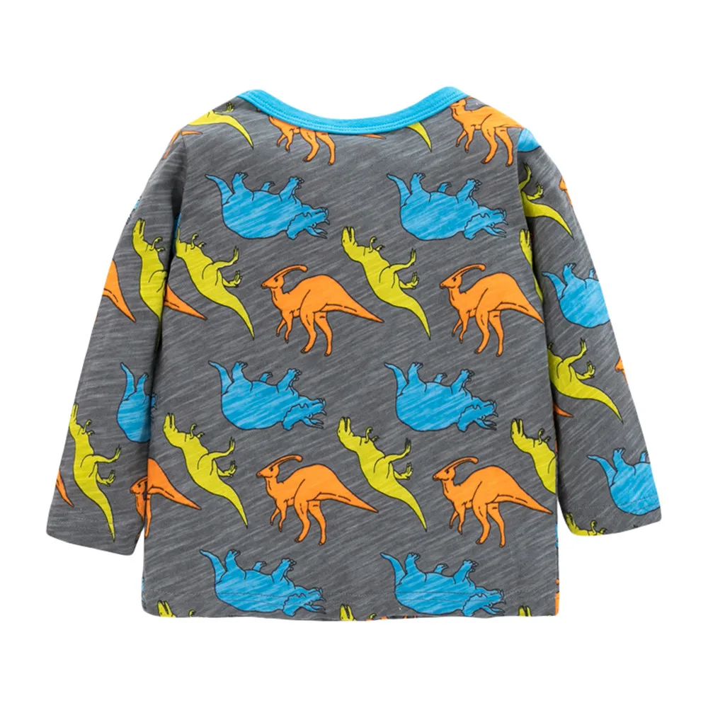 Футболки для мальчиков, с аппликацией и шлейфом, из хлопка, с длинным рукавом прекрасная детская одежда, мальчики девочки футболки