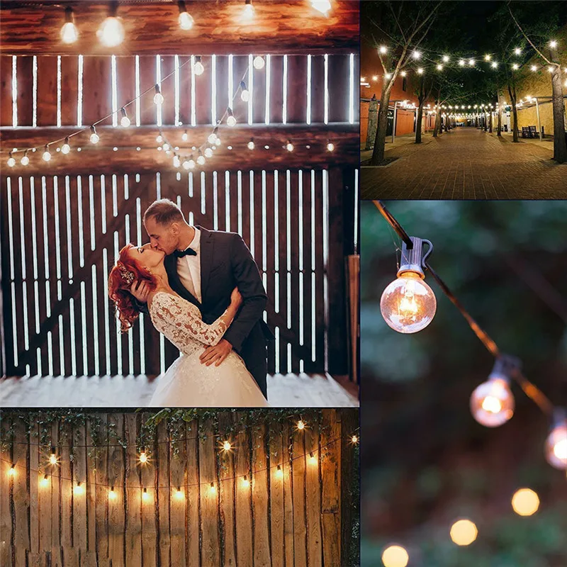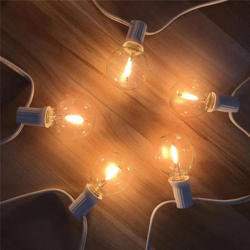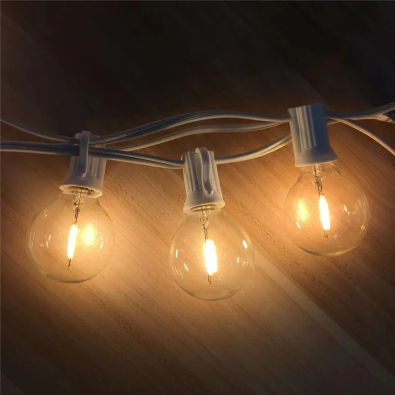 Светящаяся гирлянда G40, 25 футов, круглые лампы с 25 прозрачными шариками, винтажные лампы с теплым белым интерьером, подвесной зонтик для внутреннего и наружного освещения