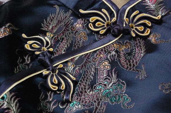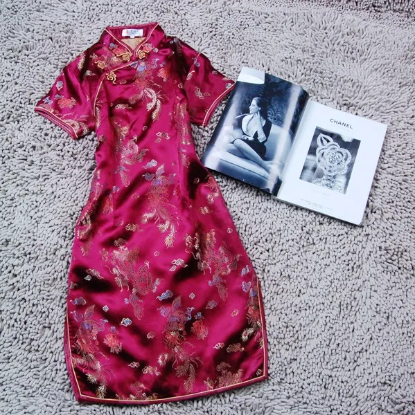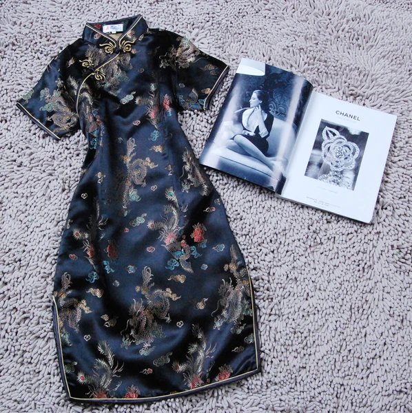 Женское короткое китайское платье Ципао, черное с драконом и Фениксом, большие размеры 3XL, классическое Ципао