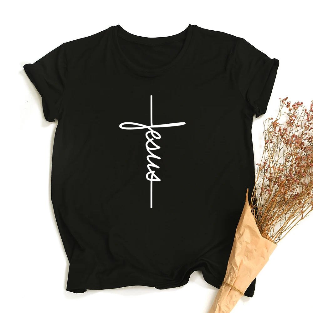 Футболка "Вера" Крест Иисус футболки топы христианская рубашка Женс...