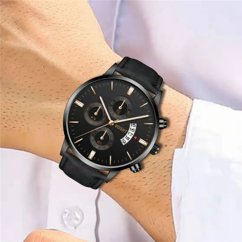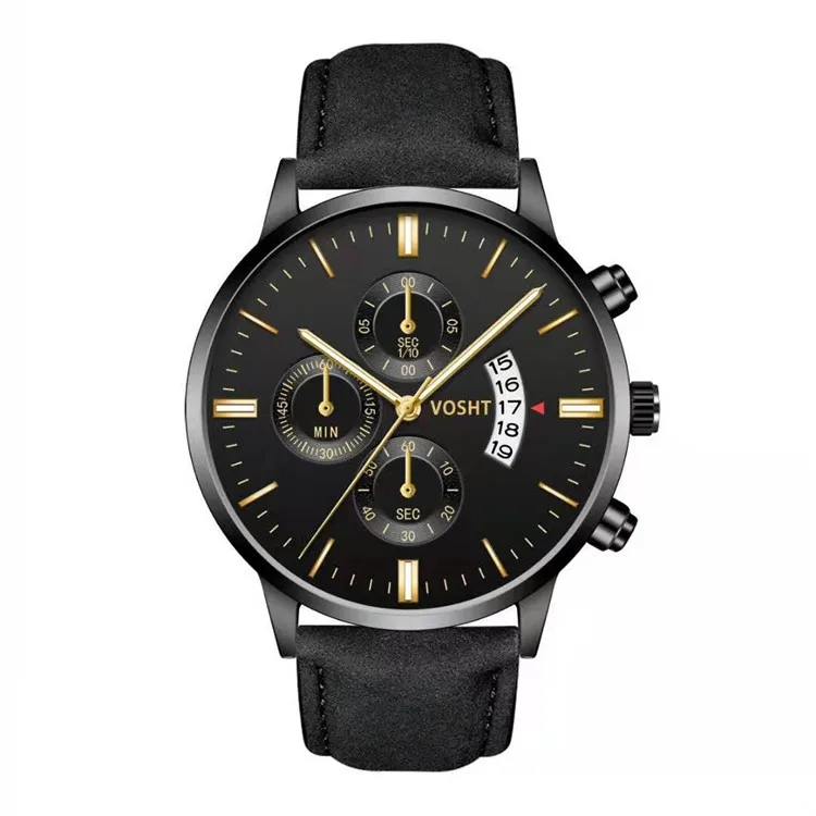 100 шт.лот мужские наручные часы с календарем и ремешком из ПУ кожи...