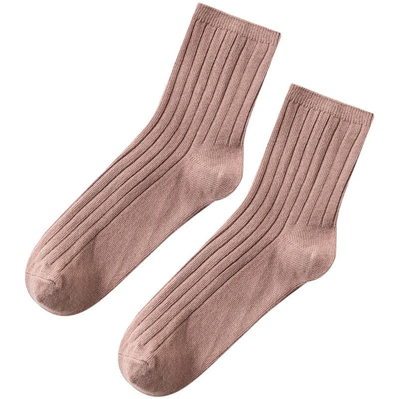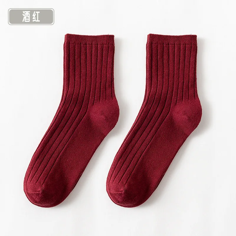 Женские короткие носки Caramella, однотонные носки средней длины с двумя иглами, Осень-зима