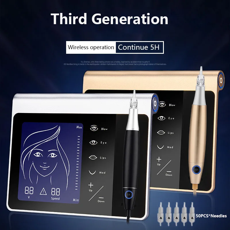 Новая машина для перманентного макияжа с сенсорным экраном, набор для бровей, машинка для подводки глаз, 50 шт., картридж, Neeldes, перезаряжаемая батарея
