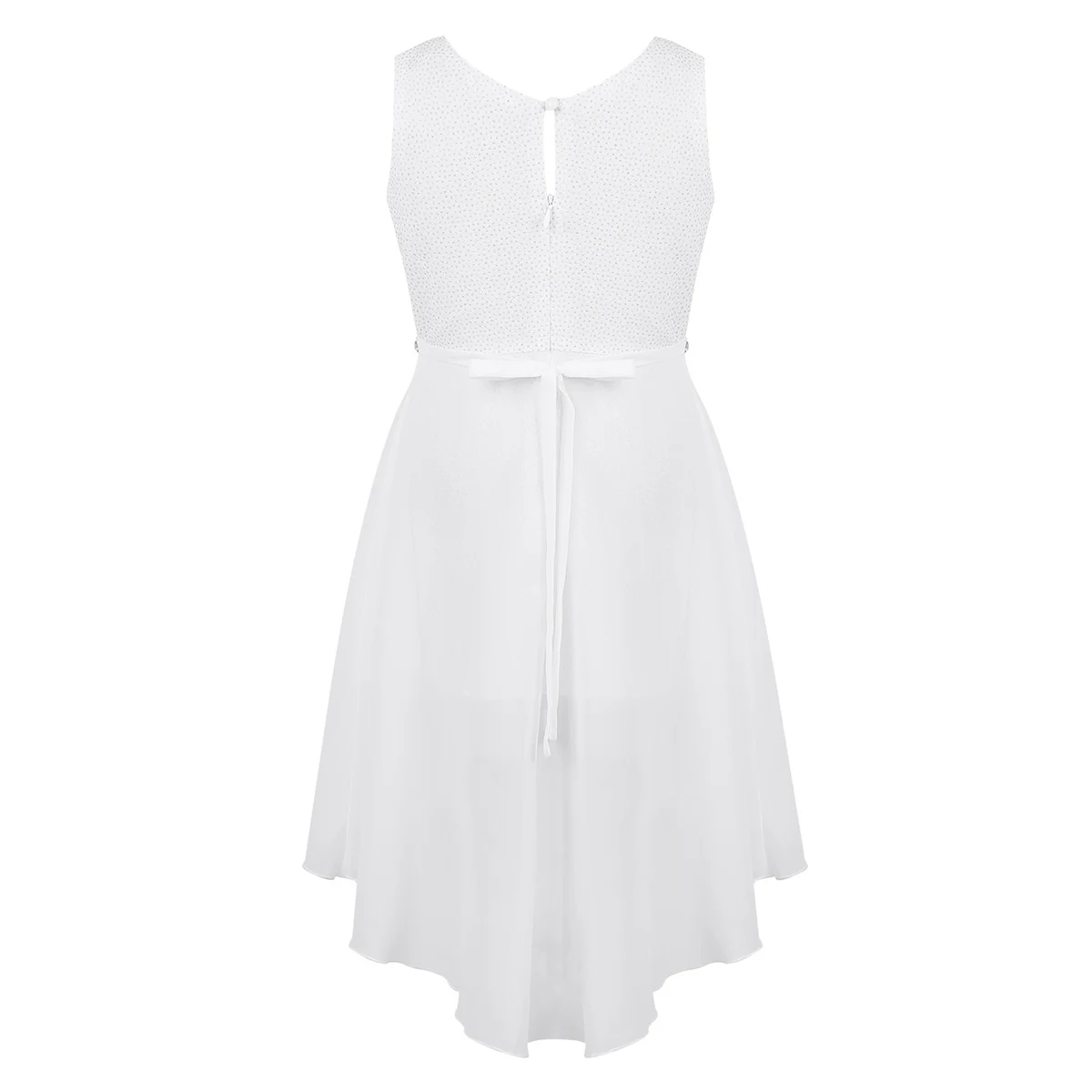 Особенности:Платье изготовлено из полиэстера и шифона, ручная стирка.Таблица размеров означает возраст для девочек, но только для общего руководства.Без рукавов, Круглый воротник с застежкой, с высокой талией дизайн, украшенный к требованиям заказчика; Сверкающие стразы спереди, с заплетенной лентой сзади.Скрытая Центральная застежка-молния сзади. 1 слой с высоким и низким подолом, шифоновая накладка, прикрепляемая к талии. Платье с блестками для вашей девочки.Идеально подходит для лета, вечерние, дня рождения, праздника, повседневной носки и т. д.