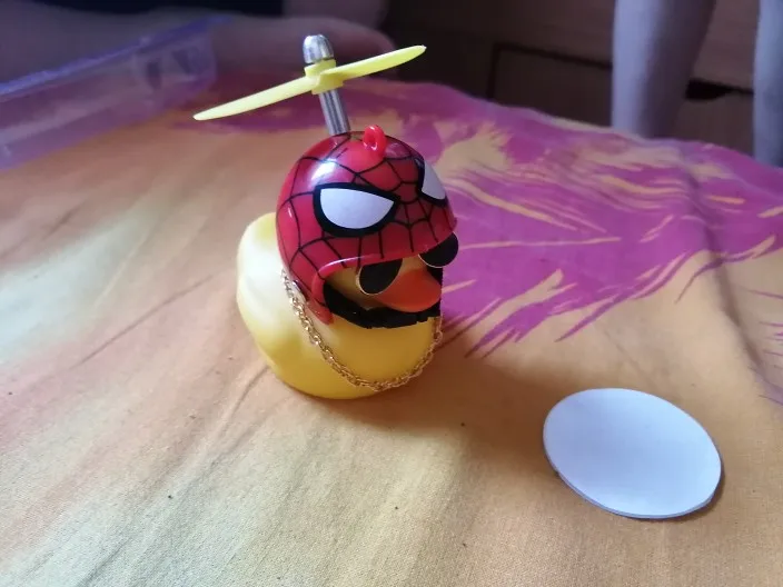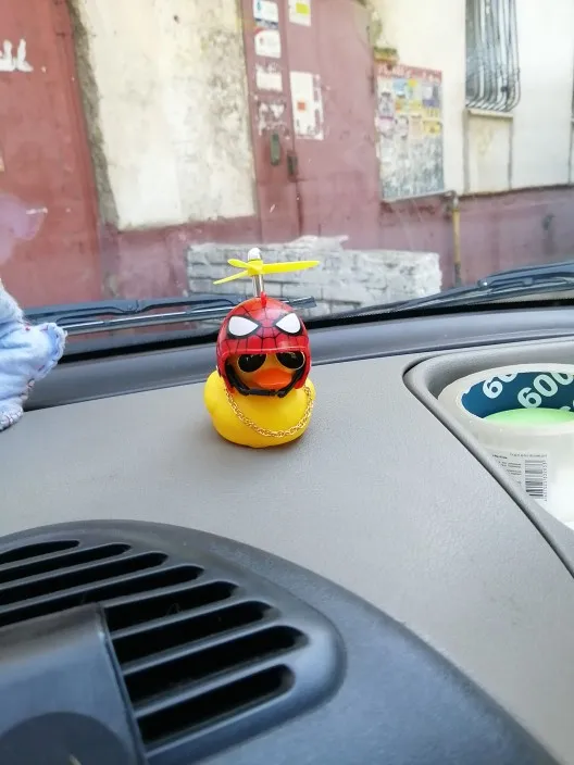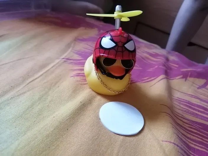 Заказывала для папы в машинуУточка резиновая,но пришлось некоторые места почистить ацитономШлем собирается из нескольких частей,соединяясь маленьким болтикомОчки нужно приклеитьТакже есть маленькая пищалка,при желании можно вытащить